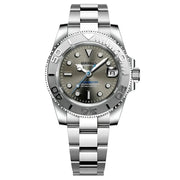Inspired by the iconic design and featuring a prestigious automatic movement, the Yacht-Master Grey Dial Mod offers a bold twist on a timeless classic. This 40mm high-end build features a distinctive Grey dial with a decorative GMT subdial, housed in a full 904L stainless steel case and bracelet.